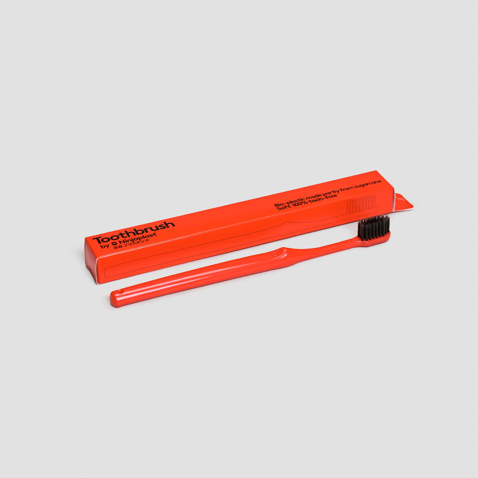 Miljövänlig tandborstning i en design som känns smidig i handen och ser perfekt ut i ditt badrum. Den här kommer i en strålande röd färg med svarta, mjuka borst.