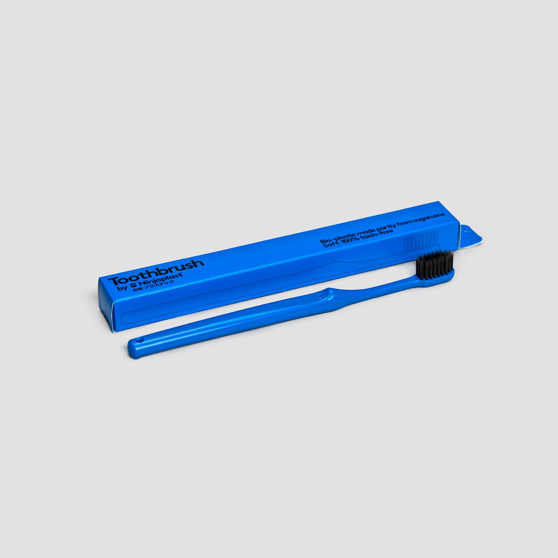 Miljövänlig tandborstning i en design som känns smidig i handen och ser perfekt ut i ditt badrum. Den här kommer i en strålande blå färg med svarta, mjuka borst.